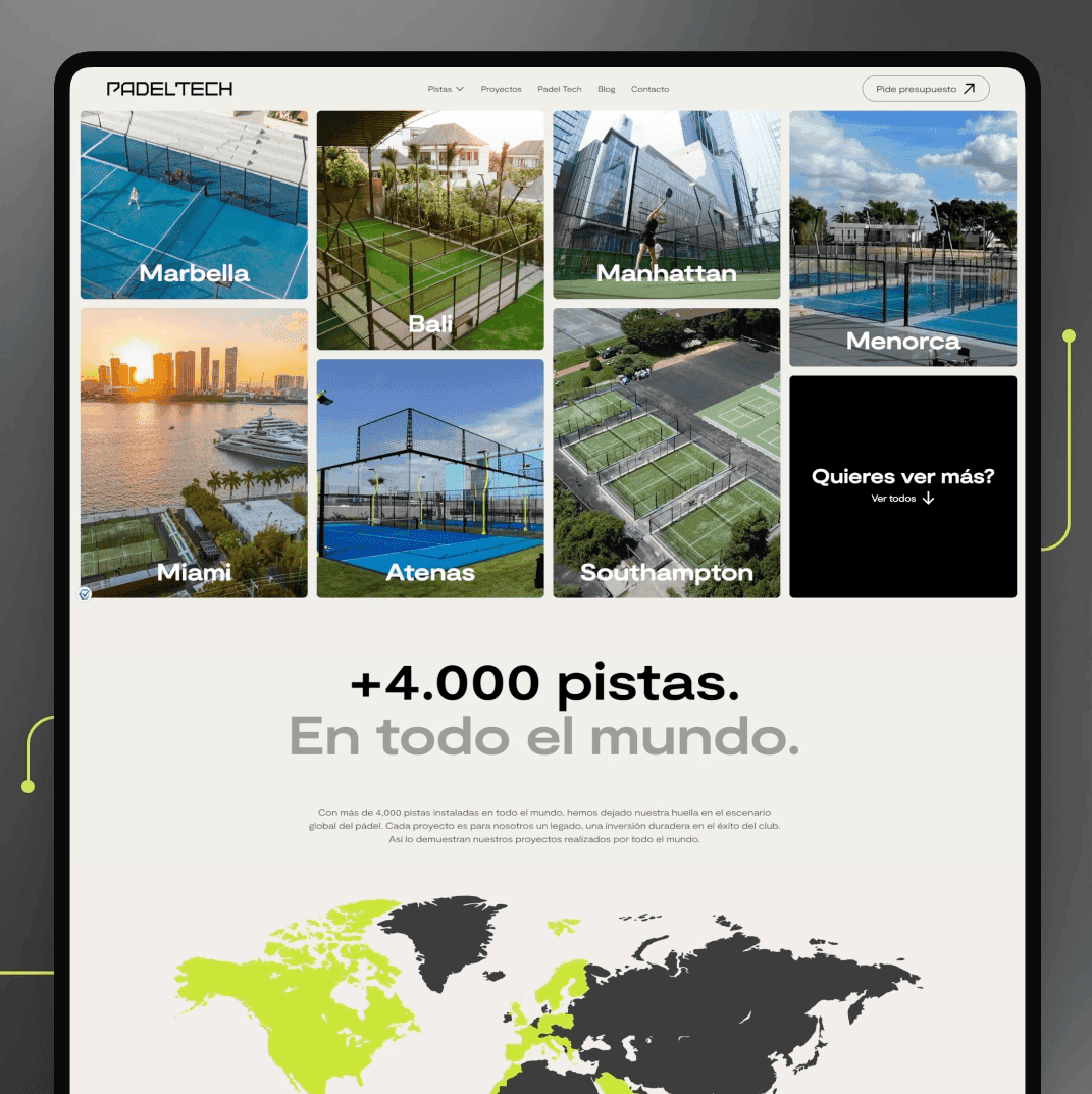 Hem fusionat avenç tecnològic amb l'elegància i el minimalisme per crear una nova pàgina web per a Padel Tech que reflecteix el seu compromís amb l'excel·lència. Aquesta nova web els ha permès augmentar els leads en el procés de vendes i augmentar així les possibilitats de negoci.